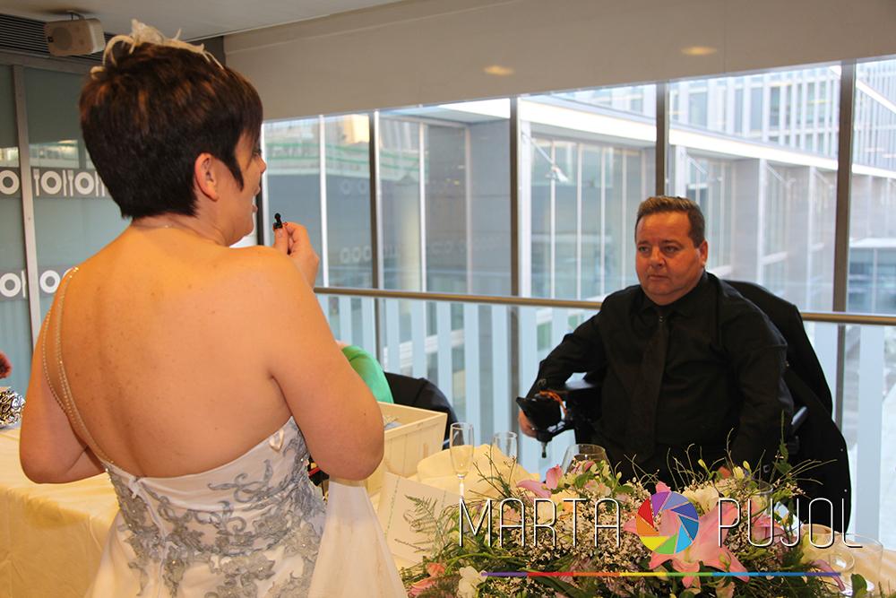 Abans de conèixer-nos, el Marcos, el nuvi, em va consultar telefònicament si alguna vegada havia fotografiat algunes noces on un dels nuvis anava en cadira de rodes, li vaig dir que no, i que no trobava cap inconvenient per fer-ho, així que en poc temps vam concertar una cita per definir com seria el meu treball el dia de les seves noces.